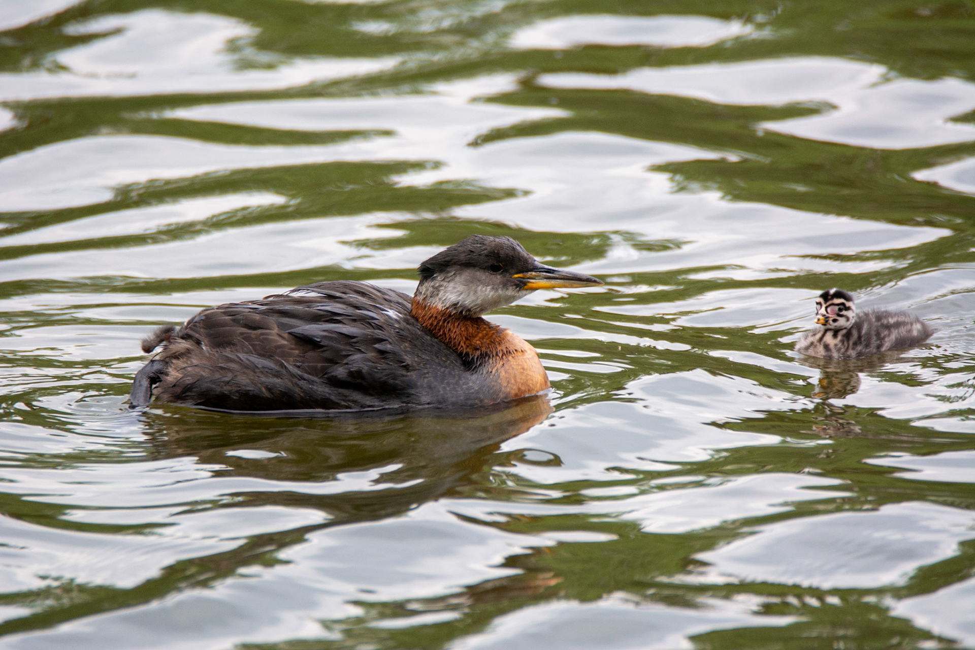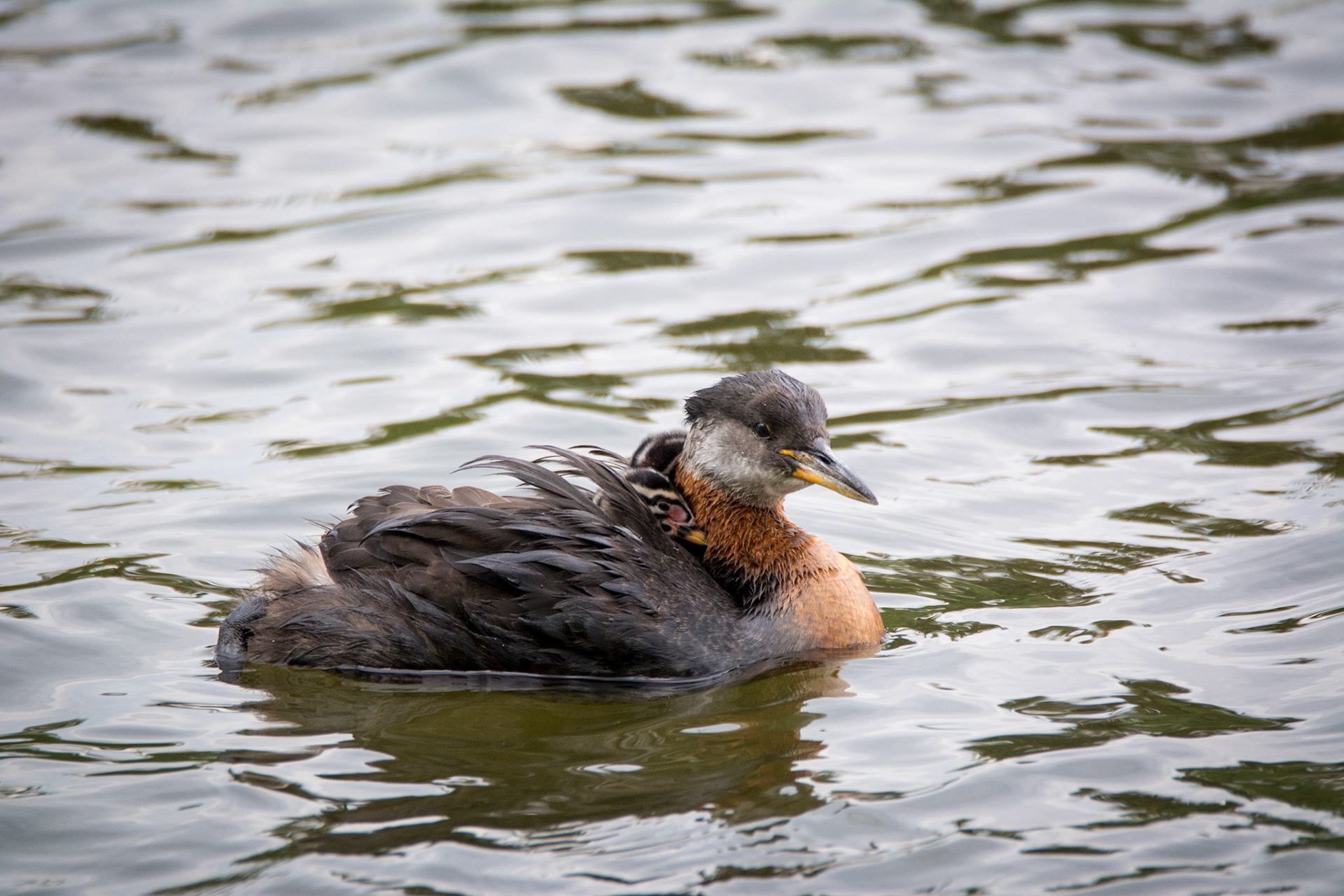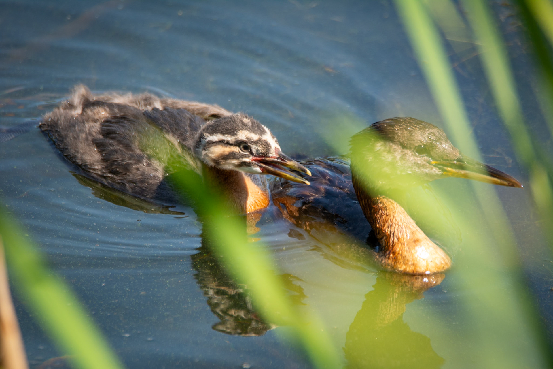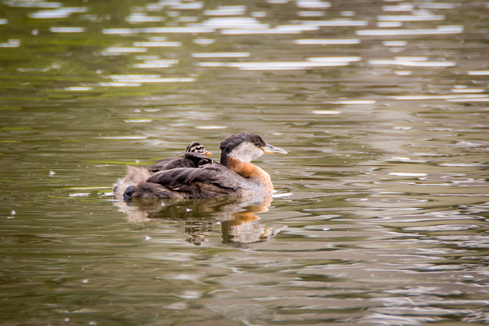 Red-Necked Grebe and Grebettes (Baby Grebes)