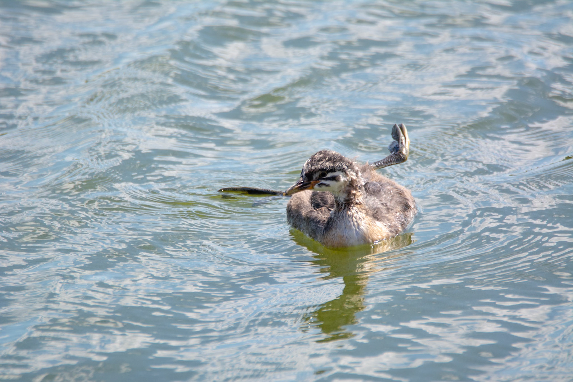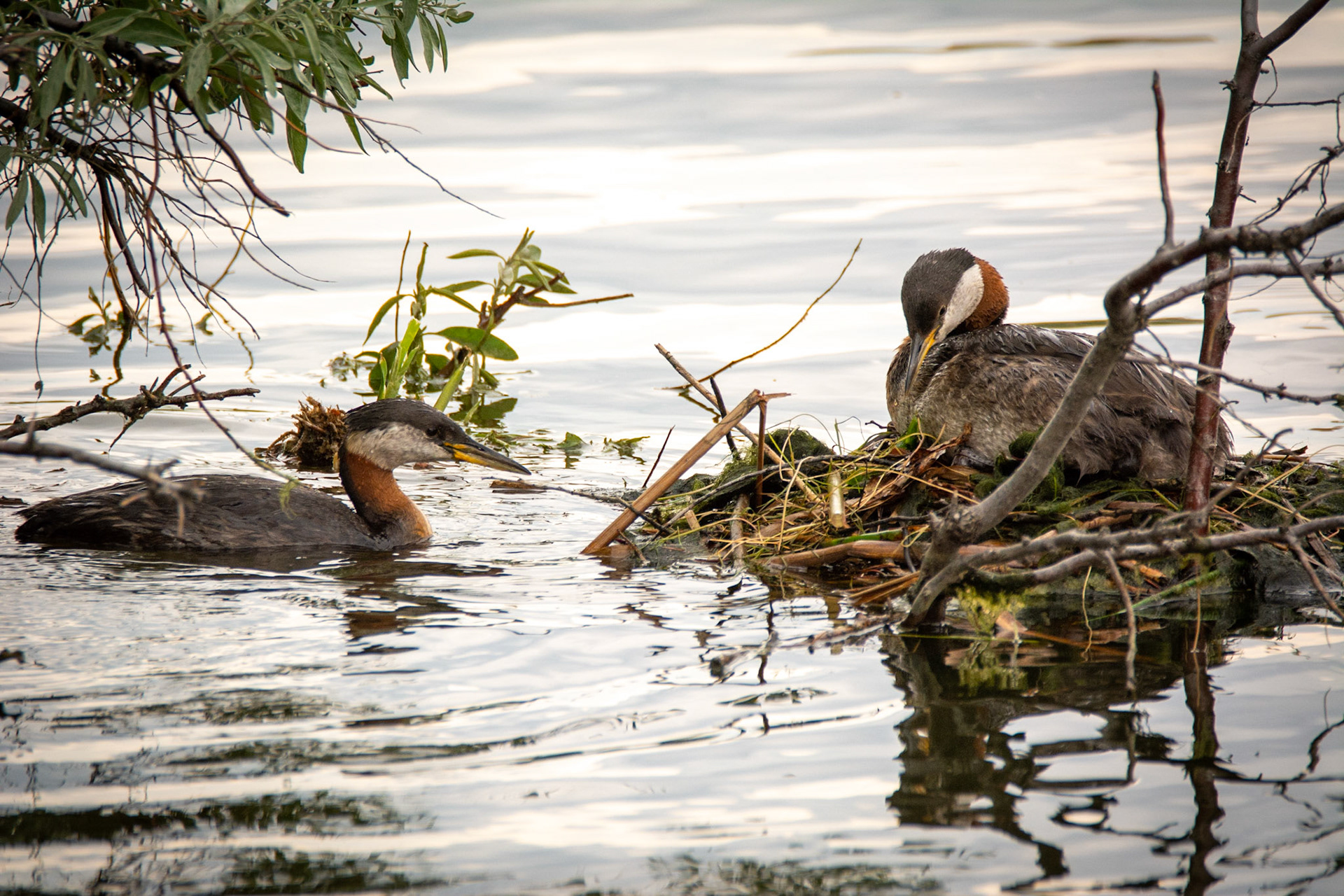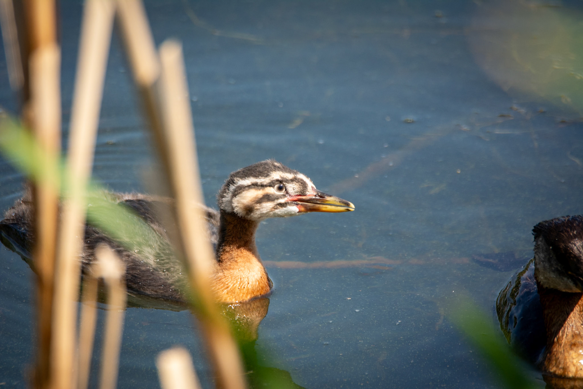 Red-Necked Grebe and Grebettes (Baby Grebes)