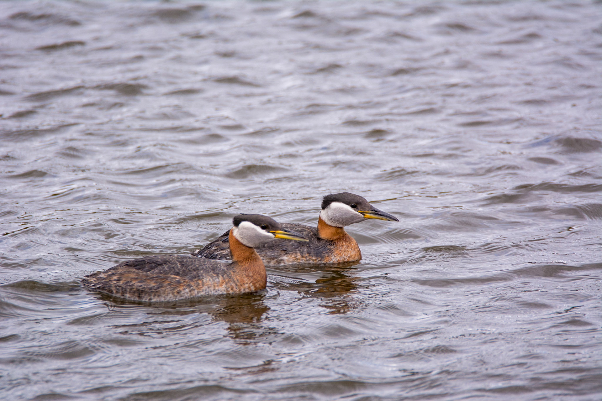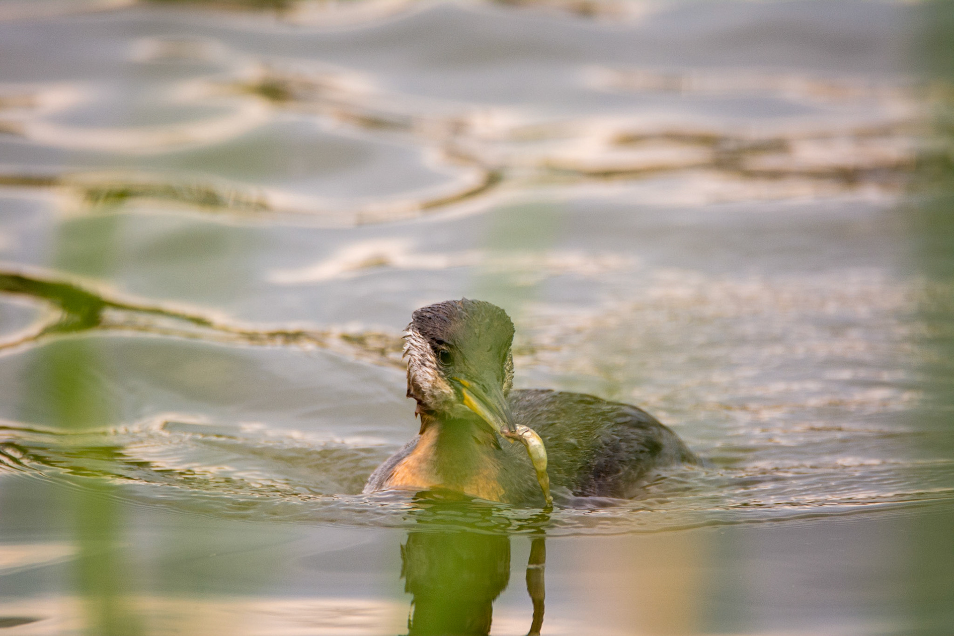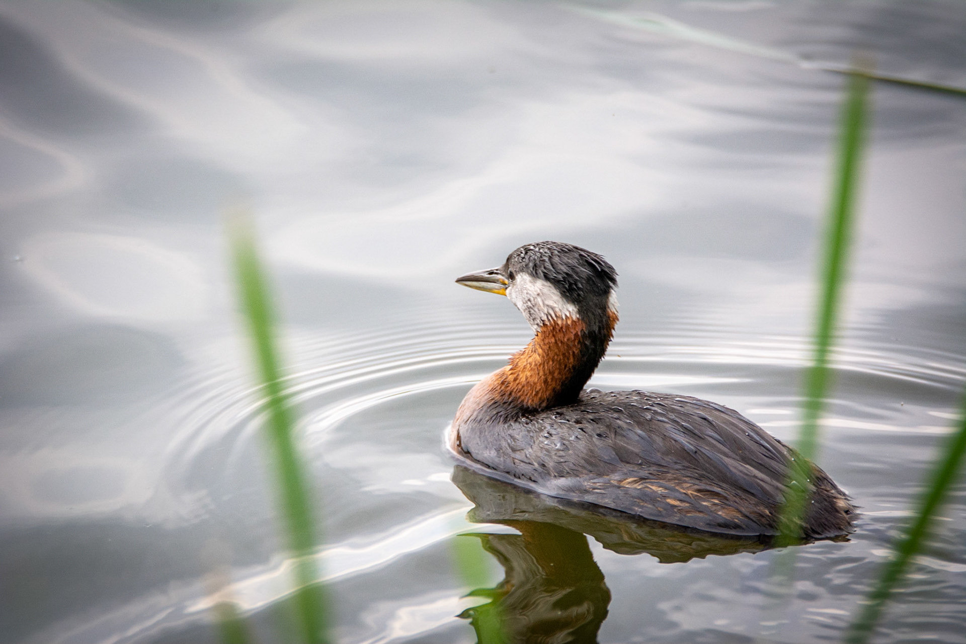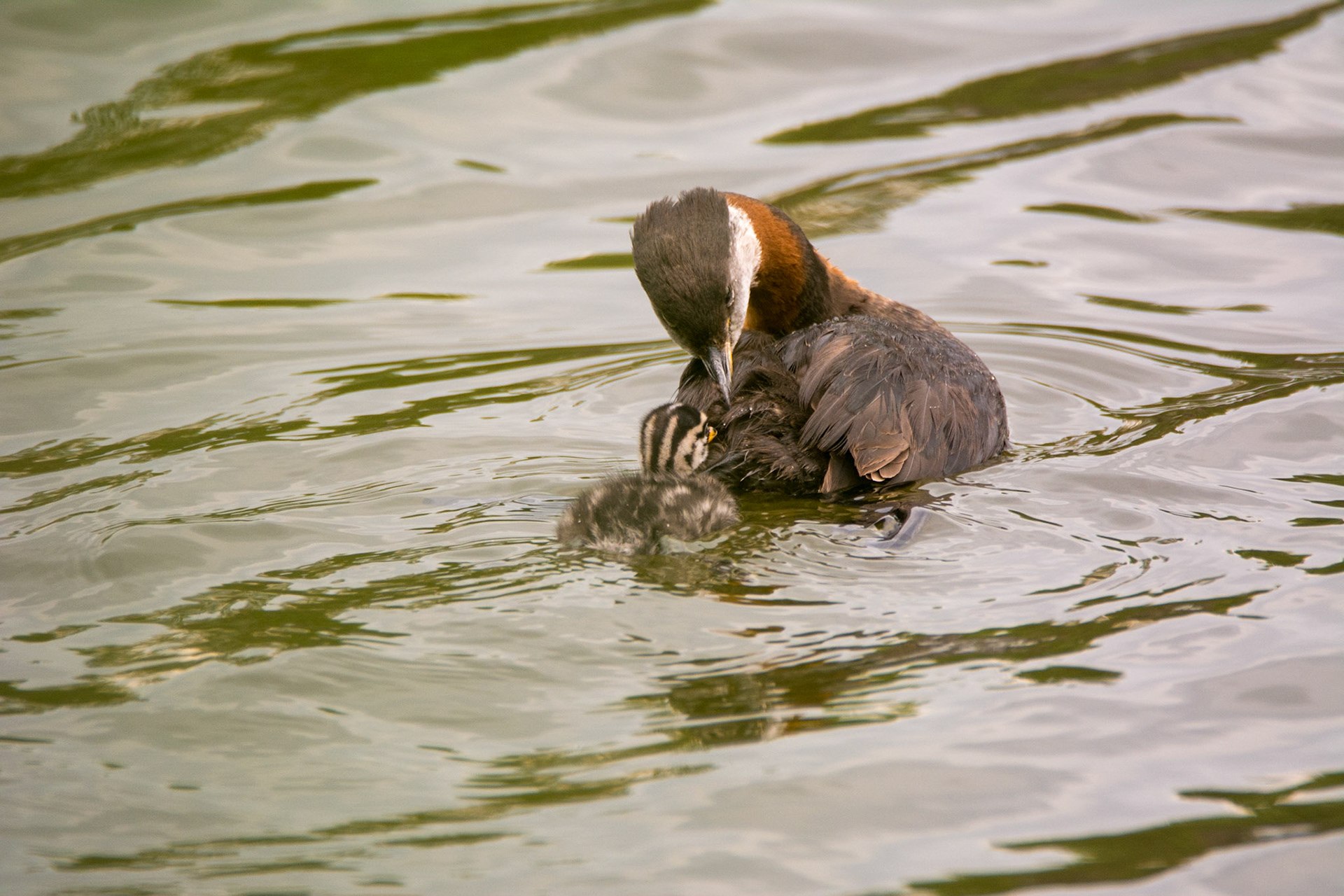 Red-Necked Grebe and Grebettes (Baby Grebes)