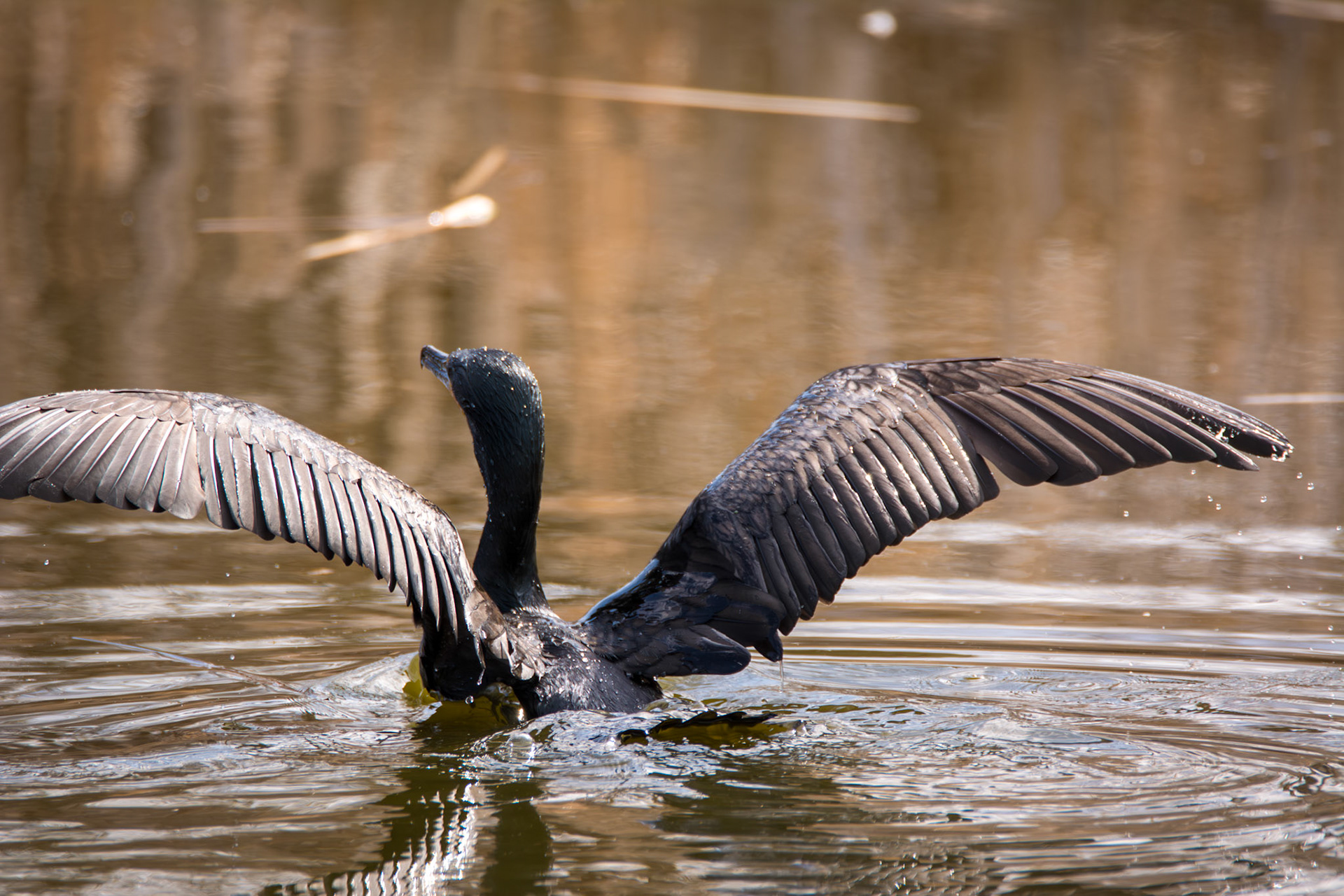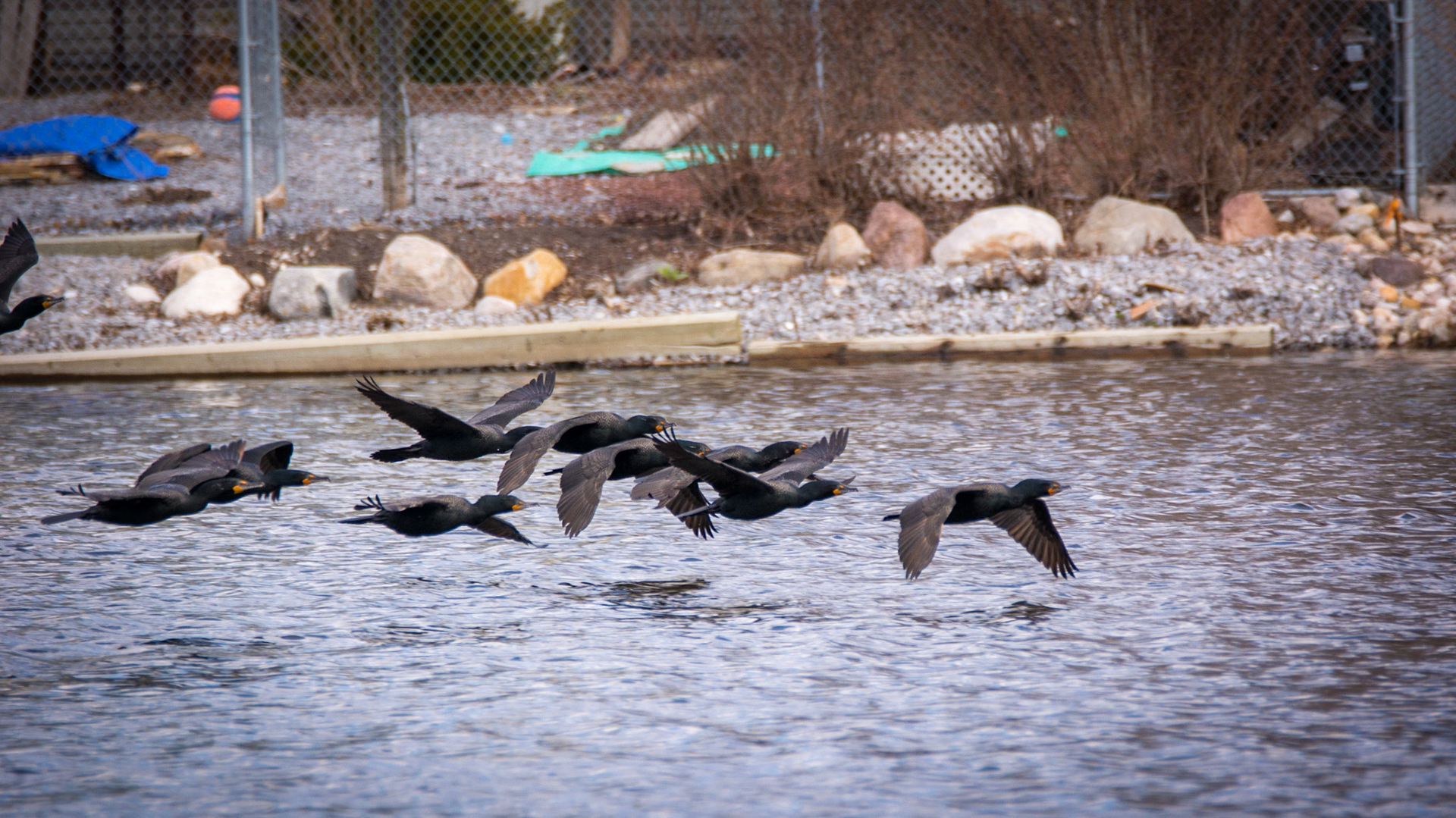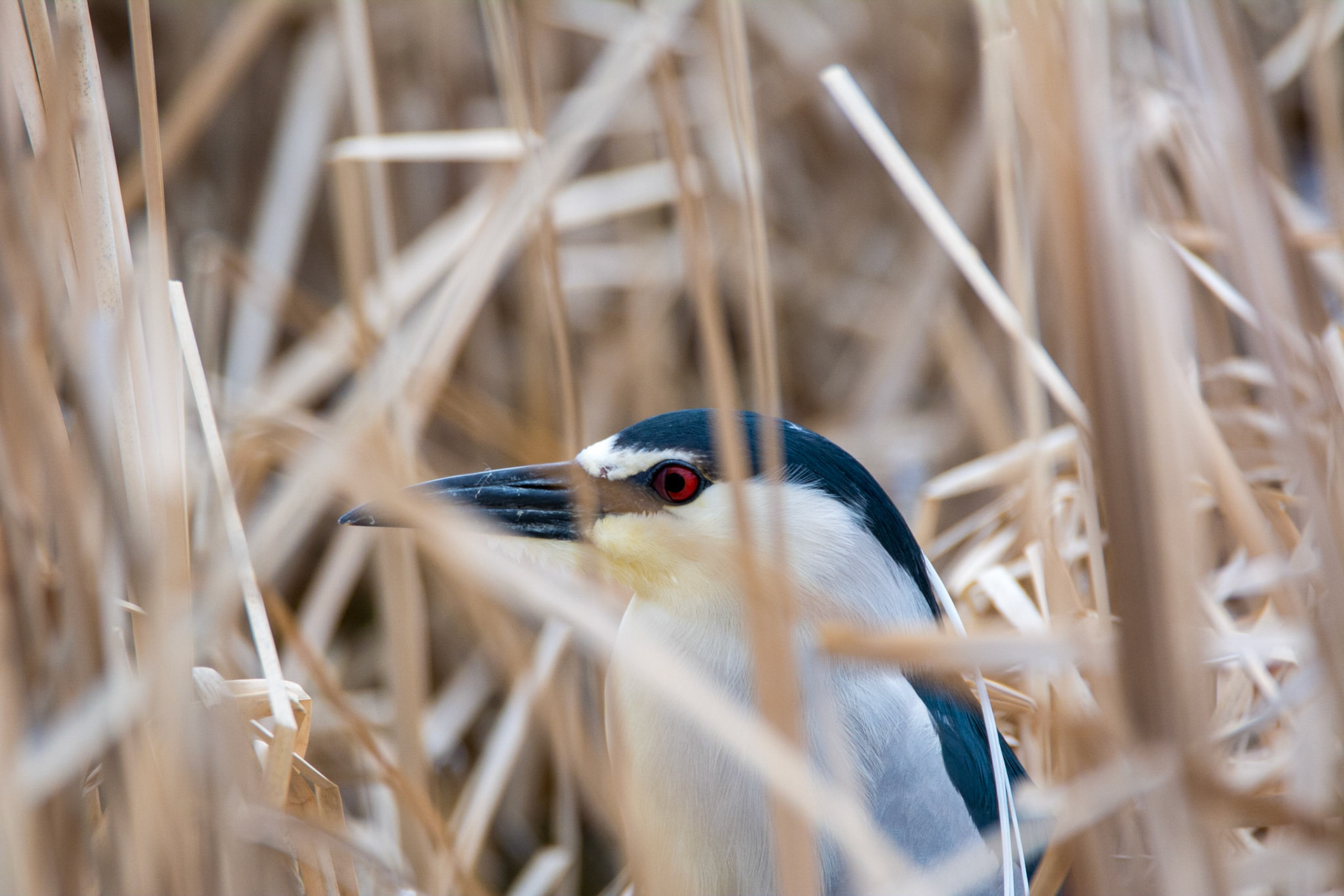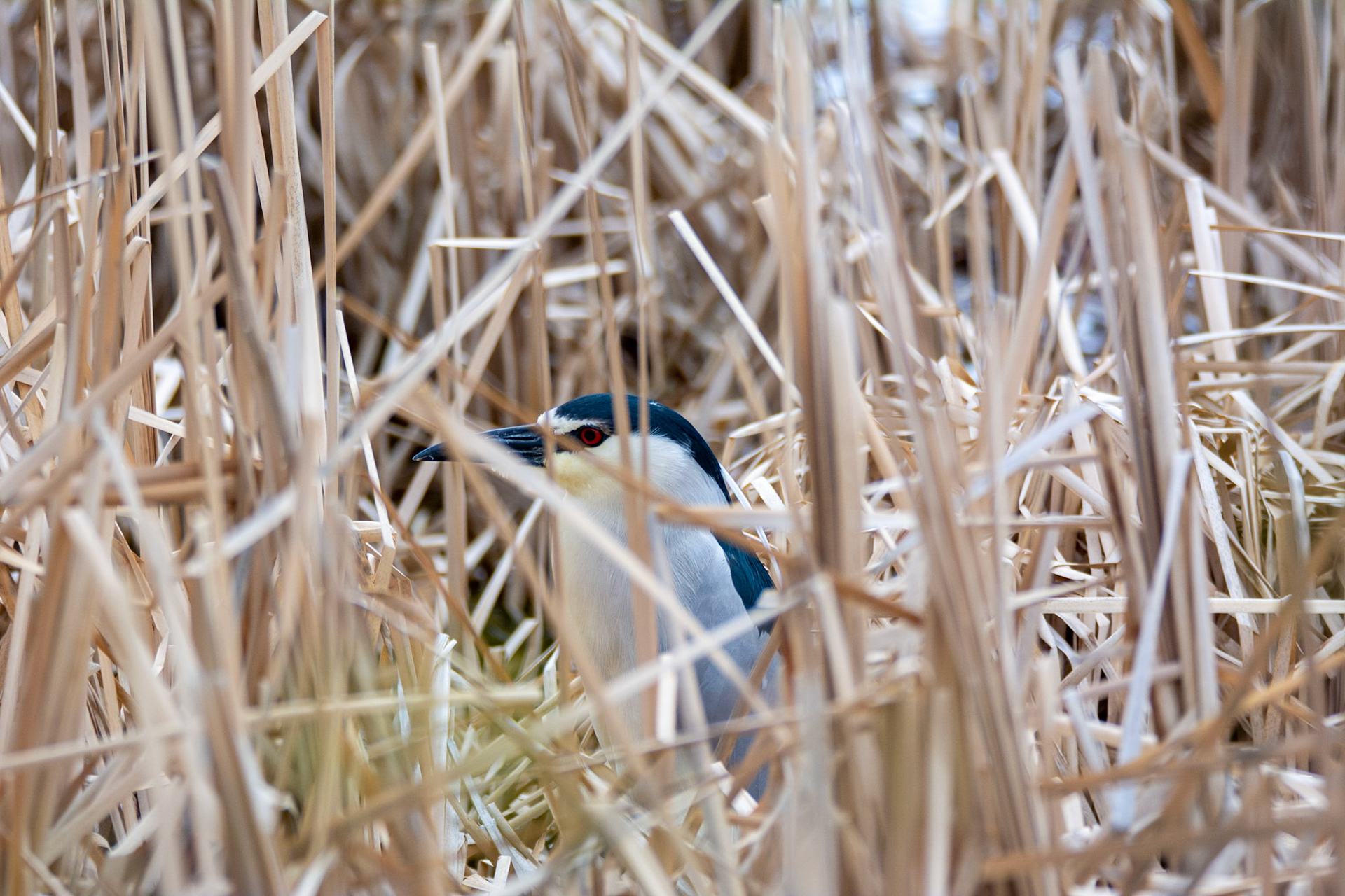 Red-winged Blackbird attempting to remove a Black-crowned Night-Heron from his nesting area.